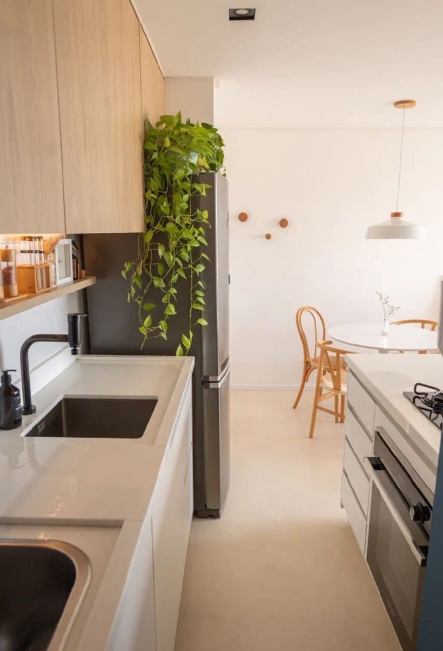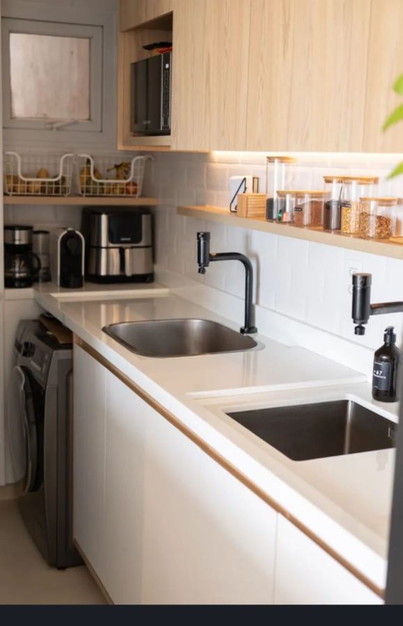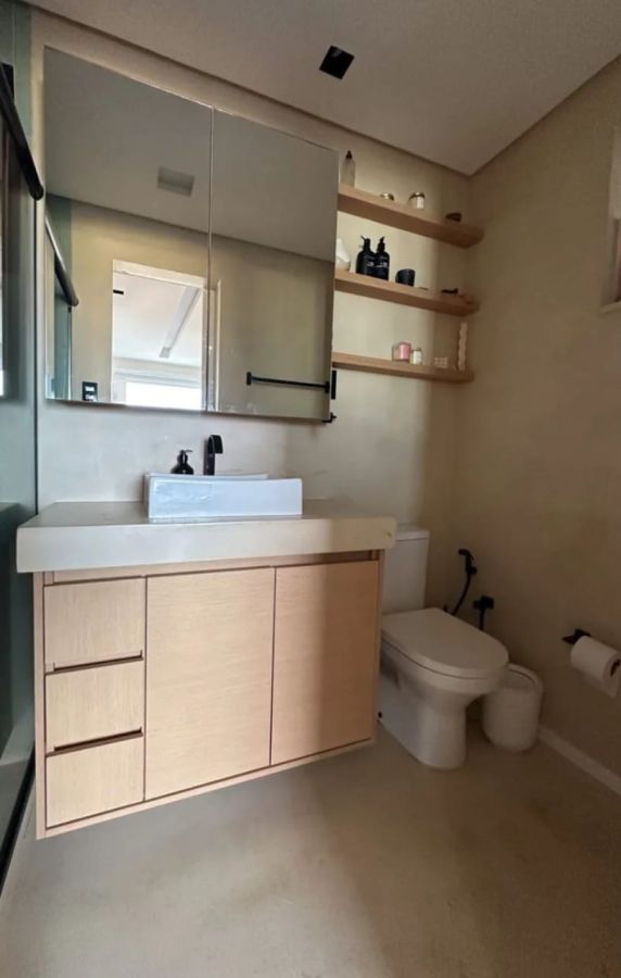 Revestimentos: Lurca na cozinha, Portobello nos banheiros, microcimento e piso vinílico