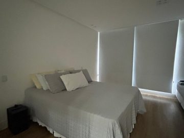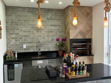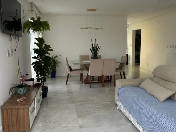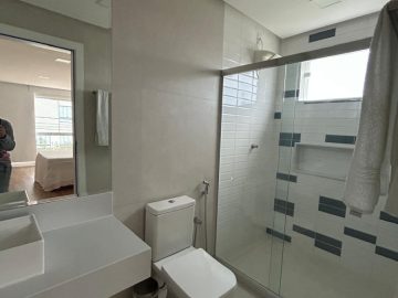 Duplex com 4 suítes, sala, cozinha americana, área de serviço, banheiro social, elevador privativo, varanda gourmet com churrasqueira e piscina privativa com deck.