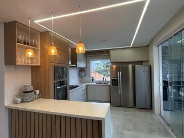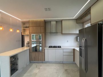 Imóvel reformado com piso porcelanato, teto rebaixado, iluminação embutida, armários planejados, blindex, energia solar, captação de água pluvial com reservatório, nascente e ventilada.