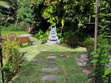 Casa nascente, bem ventilada, com piscina, lindo jardim, academia de ginástica, muitas plantas, muito verde, horta orgânica, campinho, balanços, redário, pátio interno com cascata, área gourmet.