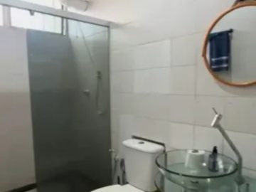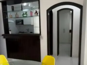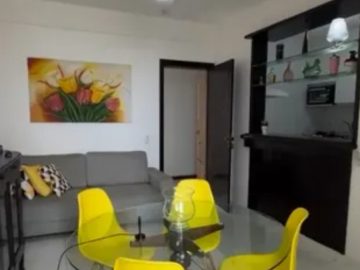 Com 2 quartos, sala, varanda, 2 banheiros, cozinha, área de serviço, armários, mobiliado, área 50 m², nascente total, vista mar total e ar condicionado.