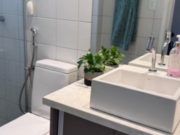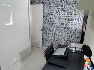Com 3/4 , 1 suíte , 1 gabinete que pode ser um terceiro quarto , sala cozinha área de serviço , varanda , Total de 3 banheiros .