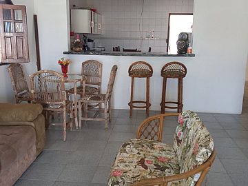 Apartamento nos fundos com quarto, sala e cozinha americana.