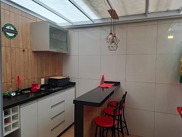 Imóvel reformado com piso porcelanato, teto rebaixado, iluminação embutida, armários planejados, blindex e nascente.
