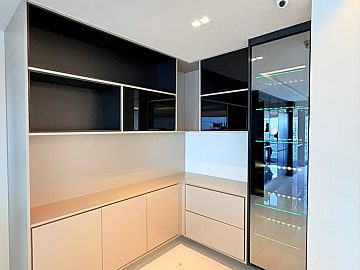 Imóvel reformado com piso porcelanato, teto rebaixado, iluminação embutida, armários planejados da Evviva, ar condicionados, varanda com reiki, bancada em mármore, blindex, andar alto, vista mar, nascente e ventilado.